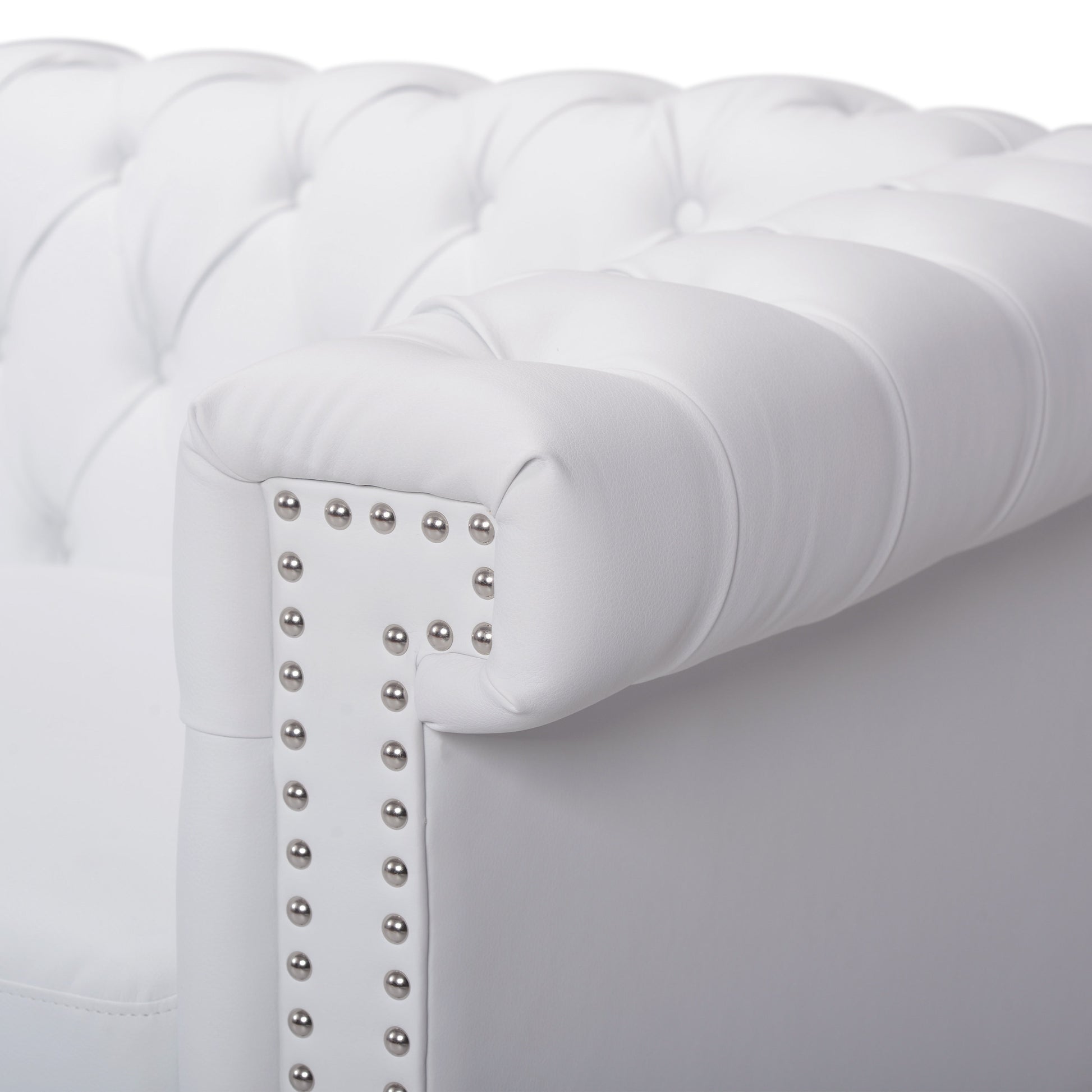 - This lovely sofa is the ideal addition to any living room with its classic design and traditional elements such as deep button tufting and nail head accents.